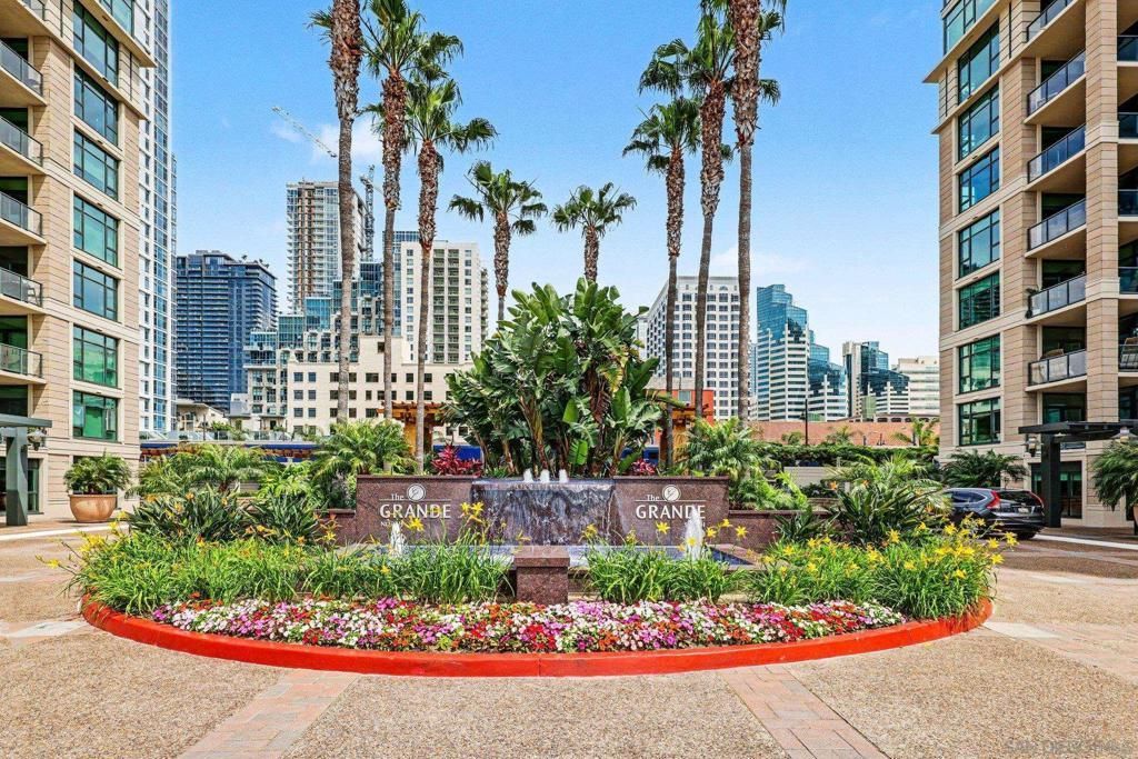 Perched on the 29th floor of The Grande North, this stunning 2-bedroom + den, 2-bath residence offers breathtaking panoramic views of the San Diego Bay, Pacific Ocean, and city skyline. Floor-to-ceiling windows flood the home with natural light, seamlessly blending indoor and outdoor living. The spacious open-concept layout features a modern kitchen with high-end appliances, quartz countertops, and ample cabinetry. The versatile den is ideal for a home office or optional third bedroom. The primary suite offers a spa-inspired bathroom and generous closet space. Enjoy resort-style living with 24-hour concierge, pool, spa, fitness center, sauna, and guest suite. Located in the highly sought-after Columbia District, just steps from the waterfront, Little Italy, dining, and entertainment. Includes two assigned parking spaces and in-unit laundry.