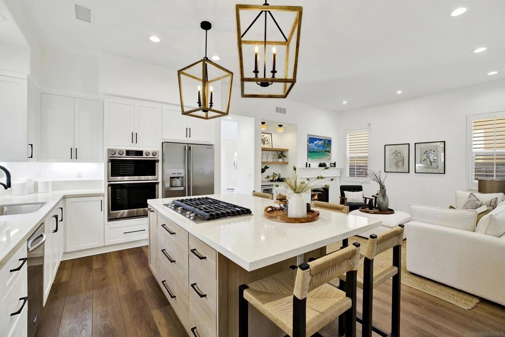 Resort-style living in this magnificent home, ideally located within the highly coveted & gated community of Marea at Aviara! As you enter, you are greeted with soaring vaulted ceilings displaying an abundance of natural light. Immediately upon entry, you'll discover the stunning and tranquil private & custom rear yard, featuring a beautiful oversized wood-burning fireplace, built-in bbq, and a 4 hole putting green-all while enjoying the tranquil sound of the flowing rock waterfall. The large & spacious primary suite includes an intimate sitting area with a newly refinished tile fireplace, complimented by a remodeled primary bath with walk-in closet. Newly remodeled kitchen boasts an expanded center island, perfect for family dinners. Upstairs you will find an additional enclosed office or bonus room with a sliding barn door. BONUS: This home comes with the best of the best Solar, two Tesla Power-wall batteries with whole-home backup system, allowing the home to withstand virtually ANY type of power outage, all topped with a brand-new roof!! Puronics whole home water filtration system. Conveniently located near dining, shopping, beaches, schools, and freeway access and just a short stroll to the Park Hyatt Aviara Resort Golf Club & Spa. This is truly the best of California Coastal living in Carlsbad!