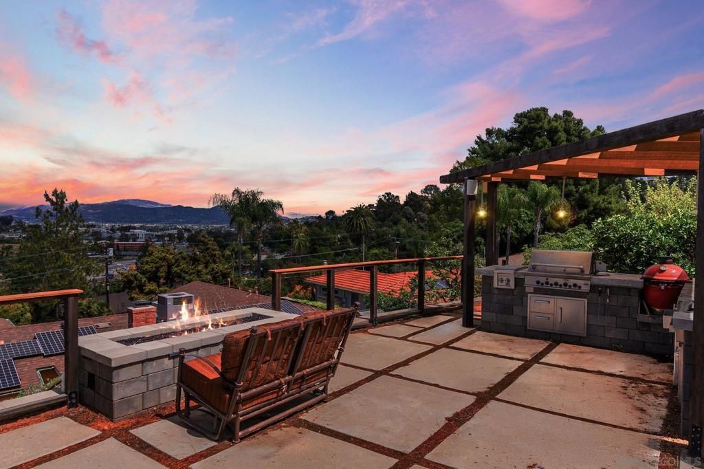 Situated on a spacious 1/3-acre lot, this 3-bedroom, 2-bath owned solar residence offers 1,621 sq ft of comfortable living with a seamless blend of original charm and modern upgrades. Enjoy panoramic east-facing views of El Capitan from multiple outdoor living spaces, including a rooftop deck above the 2-car garage?perfect for sunrise coffee or evening relaxation. The low-maintenance landscape features mature fruit trees and thoughtfully designed entertaining areas. Inside, the home boasts hardwood floors, a cozy fireplace in the living room, and a versatile layout with a combined living and dining area plus a separate family room. The primary suite includes custom closet built-ins for added functionality. Step outside to your private backyard retreat complete with an outdoor kitchen, custom BBQ grill station, firepit, horseshoe court, and jacuzzi spa?ideal for entertaining or unwinding under the stars. Additional highlights include owned solar and expansive covered front and back patios for year-round enjoyment. A rare opportunity to own a view property with space, style, and comfort in one of East Countys most sought-after neighborhoods.